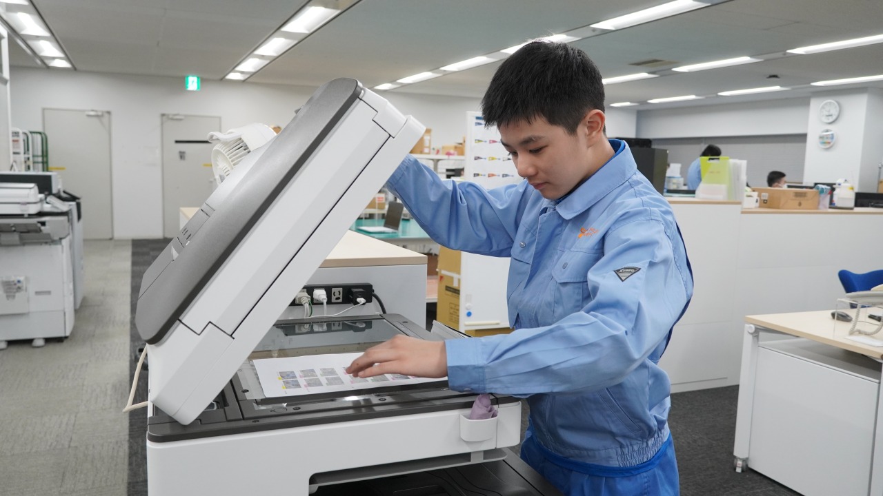 山九グループの特例子会社である株式会社サンキュウ・ウィズ様(東京都)が、カラフルモデルを起用してくださいました。会社ではたらく障害者のモデルとしてるなちゃんとたける君が選ばれ、1日がかりで撮影していただきました。